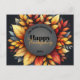 This elegant Thanksgiving postcard features a central circular grey plaque with a sophisticated golden trim. The plaque showcases fully customizable text, allowing you to personalize it with your family name, a warm “Happy Thanksgiving” greeting, and the current year. The upper half of the circle displays the family name in a stylish cursive script, while the bold, larger letters below convey the festive message. The year “20XX” at the bottom can be updated to reflect the current year.