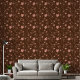 Elegant copper colored Fall leaves and flourishes on a chocolate brown background.