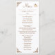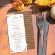 An elegant flat menu card featuring the option for appetizers , entrees , side dishes and desserts served at your fall wedding .