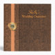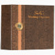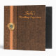 Beautiful graphic wedding planner binder done in deep lush Fall colors. A pretty dark pumpkin colored damask pattern, with graphics of a orange ribbon running down the binder, on the left side. A pretty bronze silhouette of a leaf, with a round yellow diamond decorates the middle of the orange ribbon. Text in pumpkin color is fully customizable to suit your needs. Makes a wonderful Fall wedding scrapbook, photo album, or planner, just purchase the inserts you want from your local office supply or discount store to make this gorgeous binder, into what ever you want.