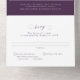 With classic and elegant typography, this formal wedding invitation sets the tone for a timeless wedding. The stylish deep plum purple background can be changed by clicking "customize further." Perfect for an autumn wedding. There is plenty of room for all the wedding and reception details and the detachable RSVP card can be sent as a postcard.