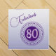 Four beautiful “Logo” types with the Birthday number 80, displayed on a modern plain circle, forming a charming wheel with purple dots and lines, around the wine box.