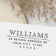 Elegant return address rubber stamp featuring your surname/family name in a vintage style font and the address below beneath a separating line