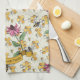 Introducing our elegant light yellow kitchen towel keepsake, featuring a hand-drawn, seemless pattern of Queen Bees & Honeycombs. This charming towel includes a personalized message inside a gold vintage scroll with editable text that says, "The Williamson Family," which can be customized to just a name or any message, making it the perfect Housewarming gift. Decorated with queen bees, exotic flowers, cute golden hearts and honeycombs, this towel exudes both elegance and whimsical charm.