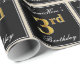 This simple and elegant wrapping paper design features a personalized message like "NameHere’s 3rd Birthday" (with the "3rd" having a faux/imitation gold-like coloring look) within a black-colored square area featuring a simple border outline. The name is in an elegant white-colored script-like text, and can be customized. Wrapping paper like this could perhaps be used when wrapping birthday gifts for somebody who is celebrating their third birthday. [~Z0000217]