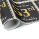 This simple and elegant wrapping paper design features a personalized message like "FirstName’s 53rd Birthday" (with the "53rd" having a faux/imitation gold-like coloring look) within a black-colored square area featuring a simple border outline. The name is in an elegant white-colored script-like text, and can be personalized. Wrapping paper like this could perhaps be used when wrapping birthday gifts for somebody who is celebrating their fifty third birthday. [~Z0000217]