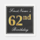 Elegant, Faux Gold 62nd Birthday + Custom Name Napkins