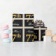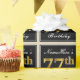 This simple and elegant wrapping paper design features a personalized message like "NameHere’s 77th Birthday" (with the "77th" having a faux/imitation gold-like coloring look) within a black-colored square area featuring a simple border outline. The name is in an elegant white-colored script-like text, and can be personalized. Wrapping paper like this could perhaps be used when wrapping birthday gifts for somebody who is celebrating their seventy seventh birthday. [~Z0000217]