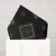 Beautiful elegant tissue paper design featuring a decorative pattern composed of faux gold ornaments on a black background.