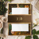This elegant tailored design features a gradient brown to gold parchment texture background with faux gold borders. It includes a text field for your monogram. This design coordinates with my Elegant Fine Art Floral Still Life wedding collection.