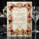 Set the tone for your formal spring union with this ornate, classically inspired design featuring garden roses, a regal crest, and warm metallic accents.This design features a symmetrical composition centered around a custom oval monogram crest. Lush, intricate borders of blush pink and rose red roses mix with sage green foliage to frame your wedding details. The artwork is accented by printed faux gold foil flourishes and vintage-style cherub illustrations at the base, all set against a soft, creamy ivory background. The typography blends elegant serif headers with flowing calligraphy script for names.This is a flat printed image with a Faux Gold Foil effect, not actual raised material.