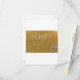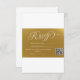 This beautiful 3.5" x 5" landscape RSVP card blends classic elegance with modern convenience, providing a seamless way for your guests to respond. The design features a stunning faux gold foil script with a sophisticated shadow/outline effect, standing out against a rich, custom gold background.