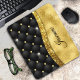 Add a touch of glitter and glam to your home office or dorm with this elegant personalized mouse pad. This chic design template features elegant girly faux gold glitter and rhinestones bling with black tuffted design. To make it extra special, it is also monogrammed and personalized with name in yellow. click the "customize further" link and use the design tool to modify the design if you like.