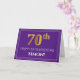 Elegant Faux Gold Look 70th Birthday, Name; Purple Card