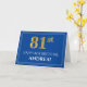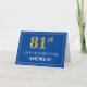 Elegant Faux Gold Look 81st Birthday, Name (Blue) Card