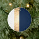 elegant faux gold, navy blue, white stripes ceramic ornament