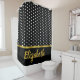 Elegant Faux Gold Script Black and White Dots Shower Curtain
