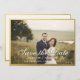Celebrate your engagement with this elegant faux gold save the date card. Completely customizable - upload your photo and change the text on the front and back to suit your needs. Both sides feature a beautiful faux gold trim and white lettering. Trendy and stylish, yet simple and timeless - a save the date card that coordinates beautifully with most of today's wedding styles and themes.