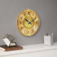 A faux gold illustration of a watch face with modern numerals and an outer ring for the minute hand has a vibrant golden circle in the middle and around the edges.