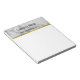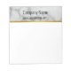 At the top, there's a faux gray marble stripe that has black display text you can replace with your company name, website, or a custom message. A thin faux gold stripe is under the marble stripe. The rest of the notepad is a white writing area. The gold look is artwork (not foil).
