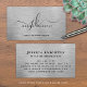 Modern, stylish professional business card with chic fancy script monogram initials and name in gray and black on faux brushed metallic silver. CHANGES: Change the text font style, color, size and placement in EDIT. ASSISTANCE: For help with design modification or personalization, color change, resizing, transferring the design to another product or you would like coordinating items, contact the designer BEFORE ORDERING via the Zazzle Chat MESSAGE tab or email makeitaboutyoustore@gmail.com.