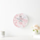 Elegant Faux Pink Marble Gray Name & Monogram Round Clock