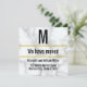 Personalize the large black monogram is at the top. In center is custom text (display text: We have moved). At the bottom you can customize your moving announcement with your name(s) and new address.