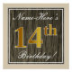 Elegant, Faux Wood, Faux Gold 14th Birthday + Name Poster