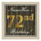 Elegant, Faux Wood, Faux Gold 72nd Birthday + Name Poster