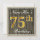 Elegant, Faux Wood, Faux Gold 75th Birthday + Name Invitation