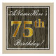 Elegant, Faux Wood, Faux Gold 75th Birthday + Name Poster