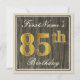 Elegant, Faux Wood, Faux Gold 85th Birthday + Name Invitation