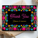 Share heartfelt appreciation with this elegant Mexican fiesta colorful floral wedding thank you card inspired by vibrant cultural celebrations and festive floral beauty. Bright colorful flowers and botanical accents frame elegant typography creating a joyful yet sophisticated design that continues the beauty of your wedding stationery suite. The vibrant floral artwork expresses warmth and gratitude while reflecting the lively atmosphere of your celebration. Perfect for sending thoughtful messages after your wedding day, this card allows you to thank friends and family while maintaining the colorful elegance of your fiesta themed wedding.