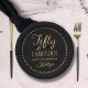 Celebrate a half-century of style with these sophisticated "Fifty & Fabulous" birthday party paper plates. Featuring a striking high-contrast design, these plates pair a deep black background with a shimmering faux gold foil script that exudes elegance and luxury. This template is fully customizable, allowing you to easily update the name for the special party! Whether you’re hosting a formal dinner at a hotel or a chic cocktail soirée, these plates will set the perfect tone for a memorable 50th milestone celebration.