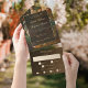 This beautiful design evokes old world charm and elegance, and is perfect for the couple who love classic fine art. This luxurious floral still life was painted in 1790 by the Dutch artist Paul Theodor van Brussel, and features roses, tulips, iris, peonies and narcissi in a terracotta urn. It is painted in warm, rich Earth tones and includes a glowing faux gold border and opaque label. This all-in-one format includes a bonus tearaway RSVP card.
