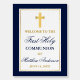 Modern Elegant Blue and Gold First Holy Communion Welcome Poster Board with Cross