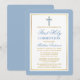 Having your Elegant First Holy Communion Light Blue Gold Invitation match the theme of your party is a great detail that your guests will appreciate. The thoughtfulness of a consistent party theme is often appreciated and can show your guests that you can host a cohesive event.