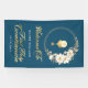 Elegant First Holy Communion Welcome Banner. Design features white floral wreath, a faux gold chalice and wafer (holy communion), typography script ''first holy communion'' and ''welcome to'' in trendy gold lettering, details in modern bold font on a navy background.