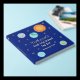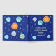 This First Trip Around The Sun silver foil guest book and album in a dark blue variation is a cute addition to the sun, stars, and planets theme for a baby boy's 1st birthday. It coordinates with the other galaxy party decor, check out the full collection. This design features a hand-painted sun, stars, and watercolor planets on the front and reverse side.