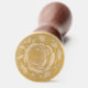 Before the wax hardens, gently and evenly press the wax seal stamp into the melted wax, ensuring it's centered.