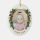 Elegant Floral 2 Photo Baby's 1st Christmas Ceramic Ornament