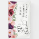 Elegant banner and welcome sign for her 50th birthday party featuring "50 & Fabulous" in a stylish script and watercolor bouquets of burgundy red, blush pink and purple florals with light sage greenery. Easily personalize with her name.