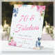 Celebrate a milestone birthday in style with our 70th Birthday Welcome Sign! Featuring a colorful watercolor spring floral design on a clean white background, this pedestal sign is the perfect way to welcome your guests to your fabulous celebration. The elegant calligraphy lettering reads "70 and fabulous," letting everyone know that you're ready to party! Best of all, our Welcome Sign is easy to personalize with your own name and details, making it a one-of-a-kind addition to your party décor.