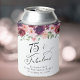 Elegant 75th birthday party can coolers with "75 & Fabulous" in a chic calligraphy script and watercolor bouquets of burgundy red and blush pink florals with sage greenery.
