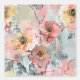 Elegant wallpaper featuring muted pink, yellow and orange floral abstracts on a blue and sage green background.