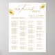 Elevate your wedding decor with these elegant Floral Alphabetical Wedding Seating Charts. Designed with a touch of modern minimalism, these stunning charts feature a crisp white backdrop adorned with delicate yellow floral accents. At the top, the phrase 'Your Favorite People' is elegantly displayed, followed by the couple's names, wedding date, and city & state. Below, guest names are beautifully presented alphabetically, alongside their assigned table numbers. 'Your Seat Awaits' invites guests to find their place, creating a seamless and stylish guest experience.