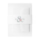 A prominent ampersand embellished with a pink and lavender watercolor floral sketch highlights this invitation belly band design with artistic style. The design is monogrammed with the bride and groom's initials that you can edit with your personalized initials.
