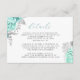 Elegant Floral Aqua Silver Script Wedding Details Enclosure Card