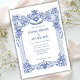 Elegant Floral Baroque Blue Column Wedding Invitation