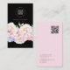 Elegant Floral Black Business Card with QR code